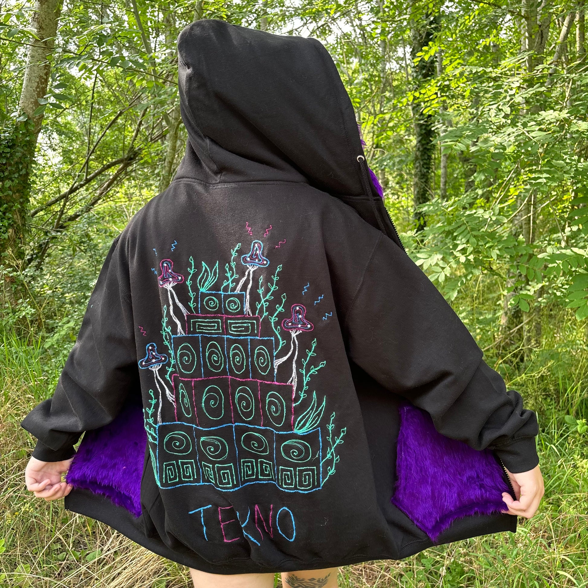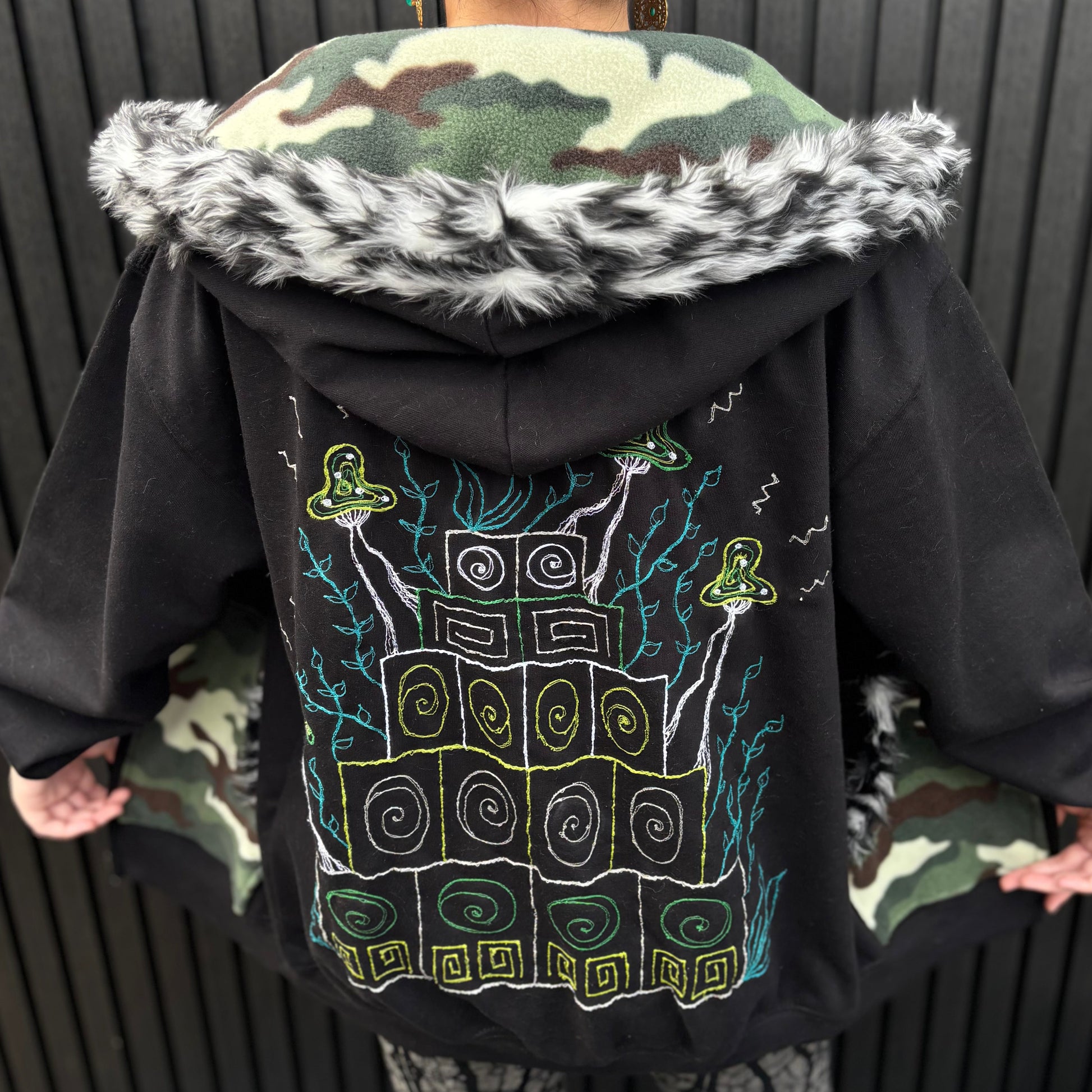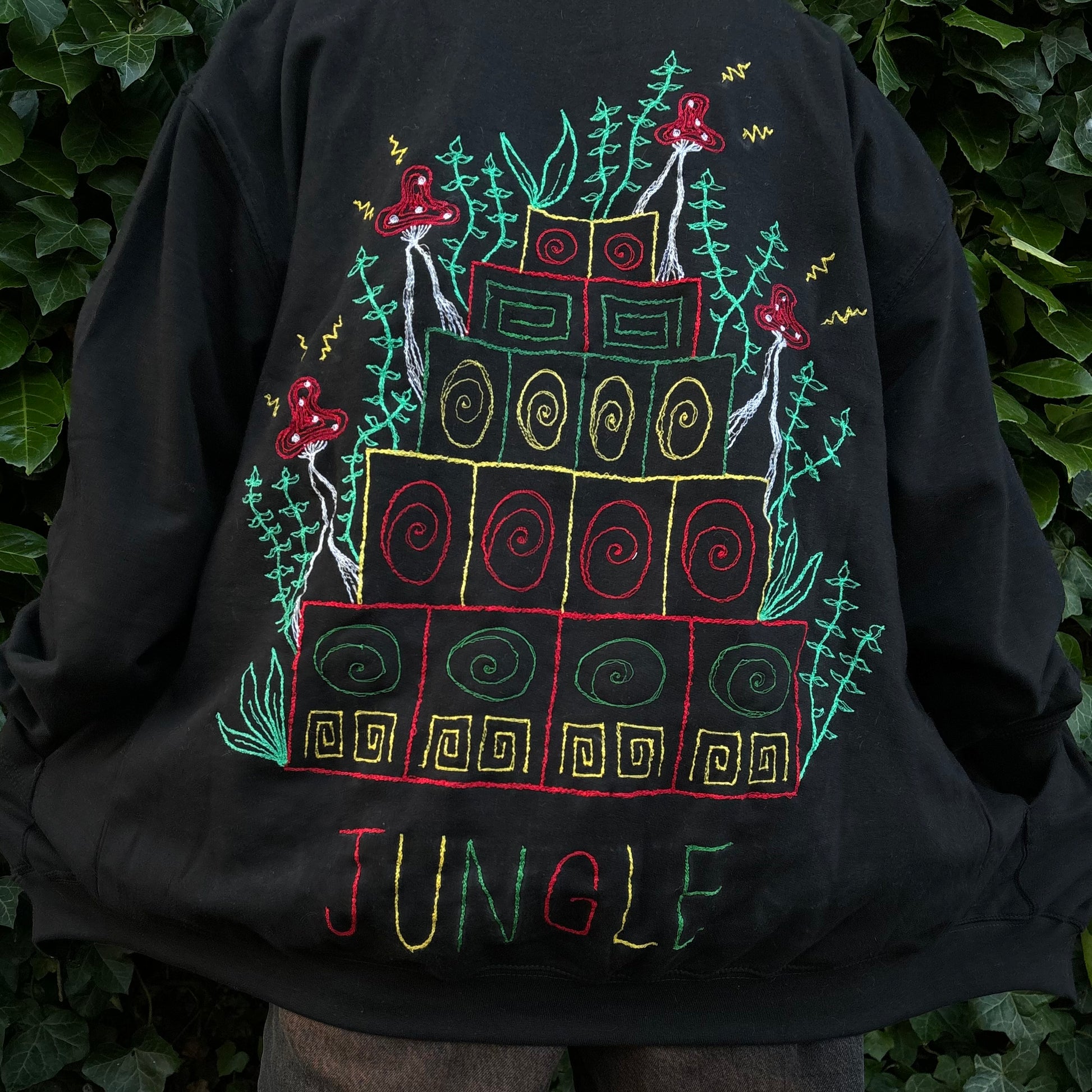 Custom made freehand embroidered jungle sound system hoodie or zip up.